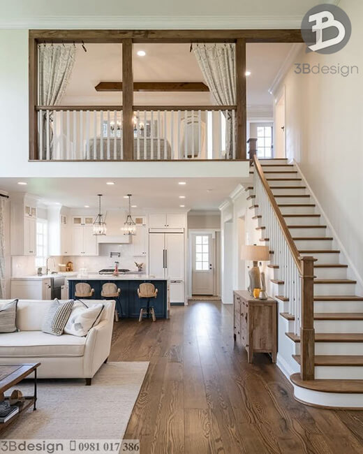 Nét sang trọng và thẩm mỹ khiến phong cách tân cổ điển được nhiều gia chủ ưa chuộng hiện nay. Một yếu tố quan trọng khi thiết kế nội thất nhà cấp 4 có gác lửng theo phong cách tân cổ điển là việc chú trọng đến sự phối hợp giữa các không gian. Gác lửng thường được thiết kế với cầu thang gỗ, tạo sự liên kết giữa các tầng. Các không gian như tầng trệt và gác lửng thường sử dụng các yếu tố thiết kế như đường nét uốn lượn nhẹ nhàng, các chi tiết trang trí tinh tế nhưng không quá cầu kỳ.